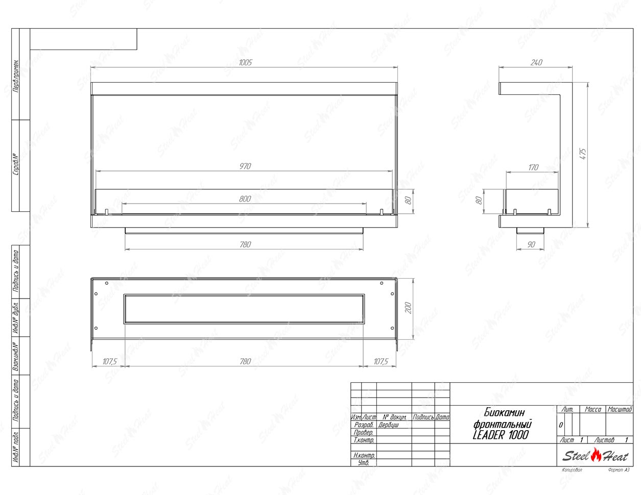 Встраиваемый Биокамин фронтальный SteelHeat Leader 1000предназначен для встраивания в глухие ниши из гипсокартона, кирпича, пеноблоков, бетона.