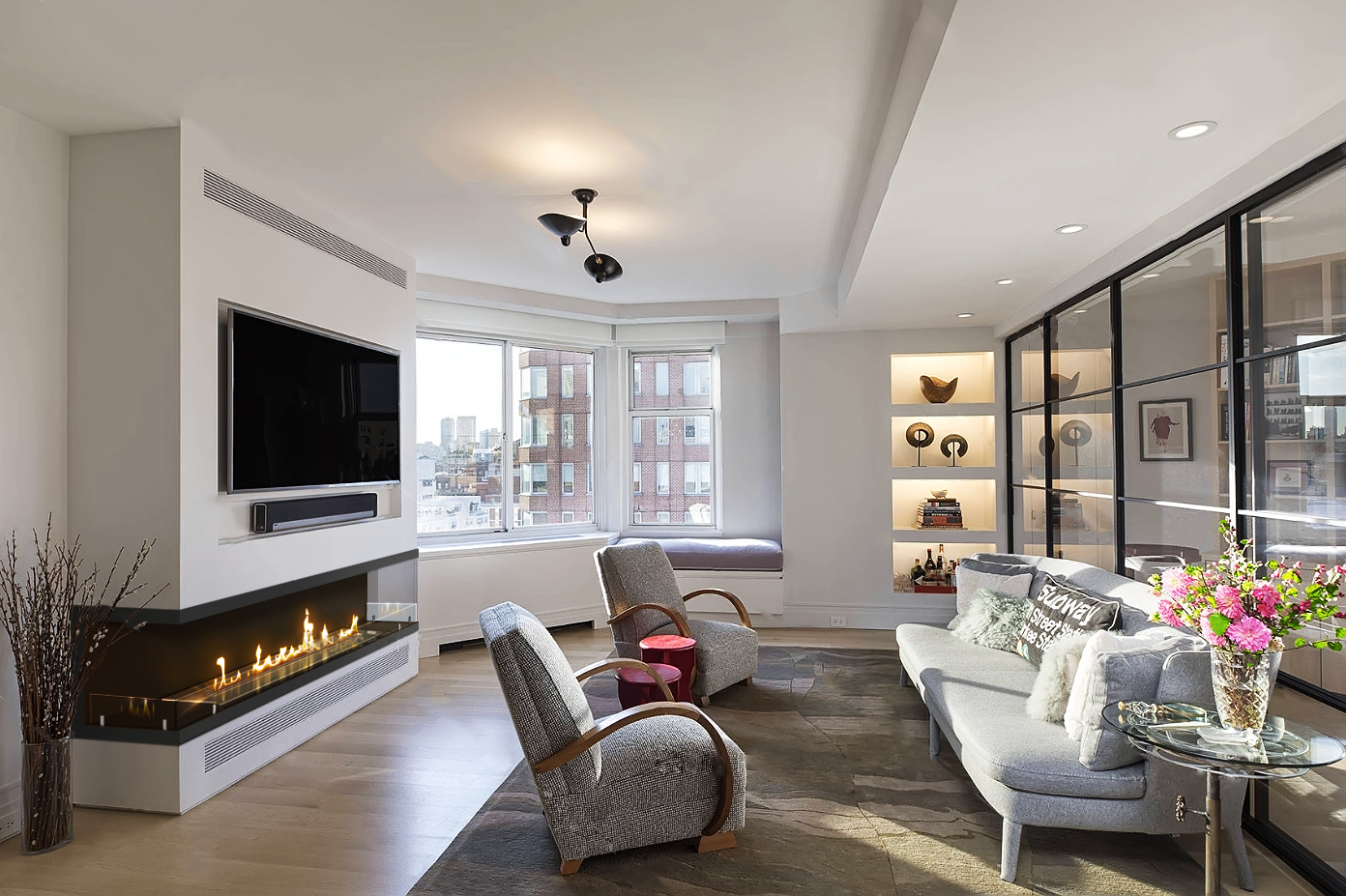 - Встраивается в стены, проёмы, ниши, каминные порталы, мебель.