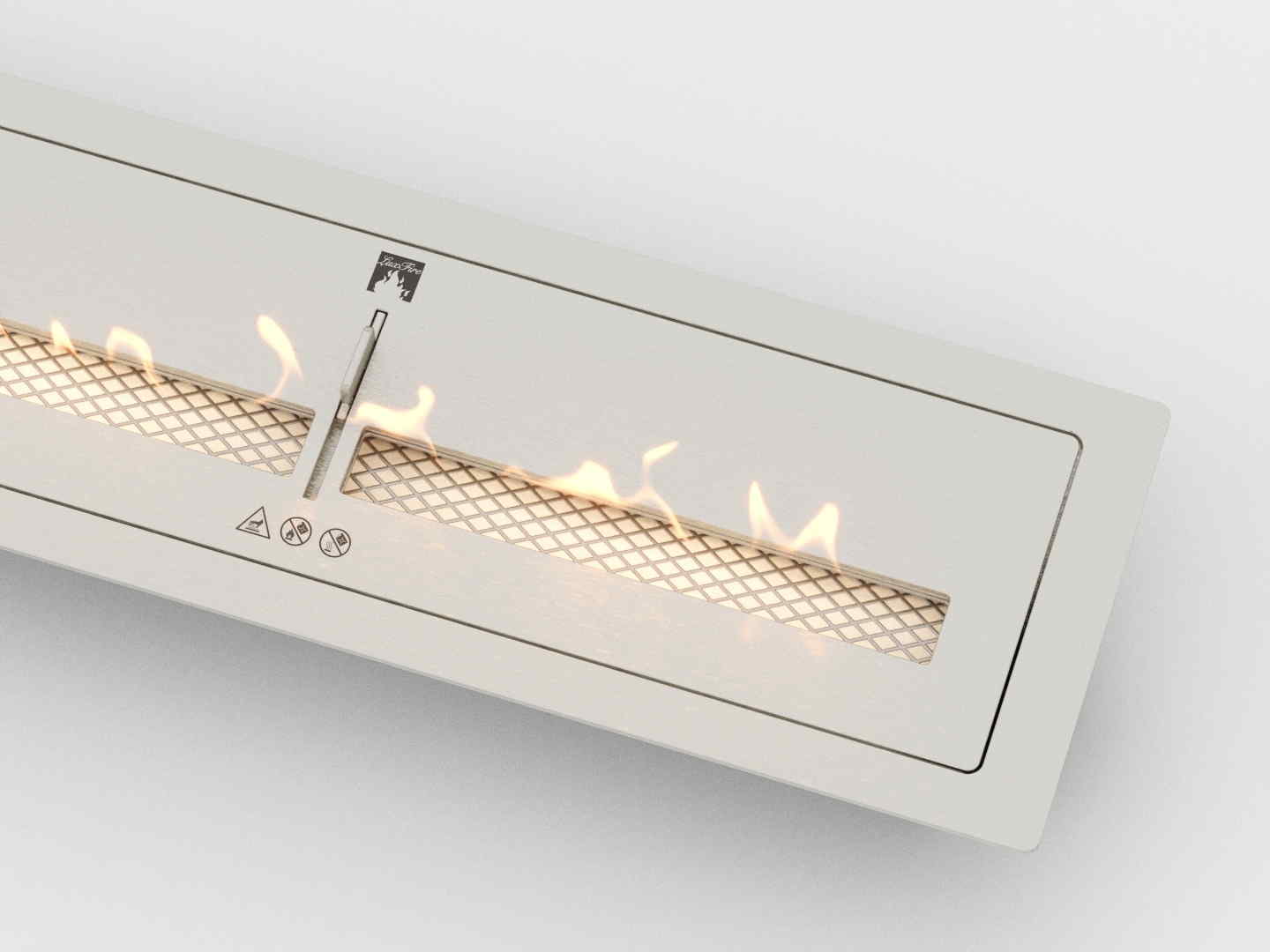 Блок оснащен встроенным пламегасителем, при этом удобно декорировать топливный блок керамическими дровами, они не создают препятствия ходу задвижки.